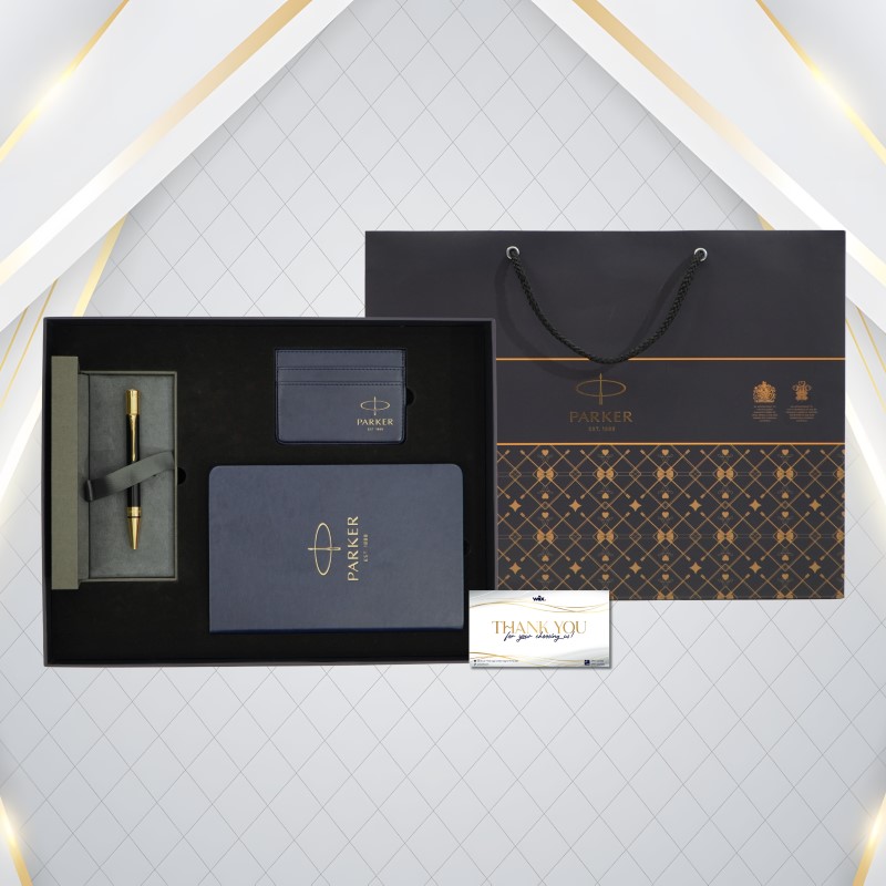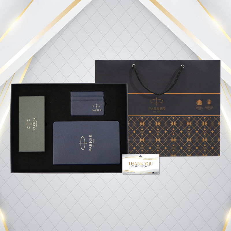 - Đóng gói sang trọng: Hộp quà và túi giấy đồng bộ thương hiệu Parker.