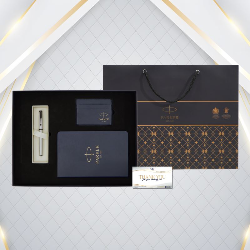 • Phụ kiện: Sổ da, ví đựng thẻ, hộp quà, túi giấy Parker