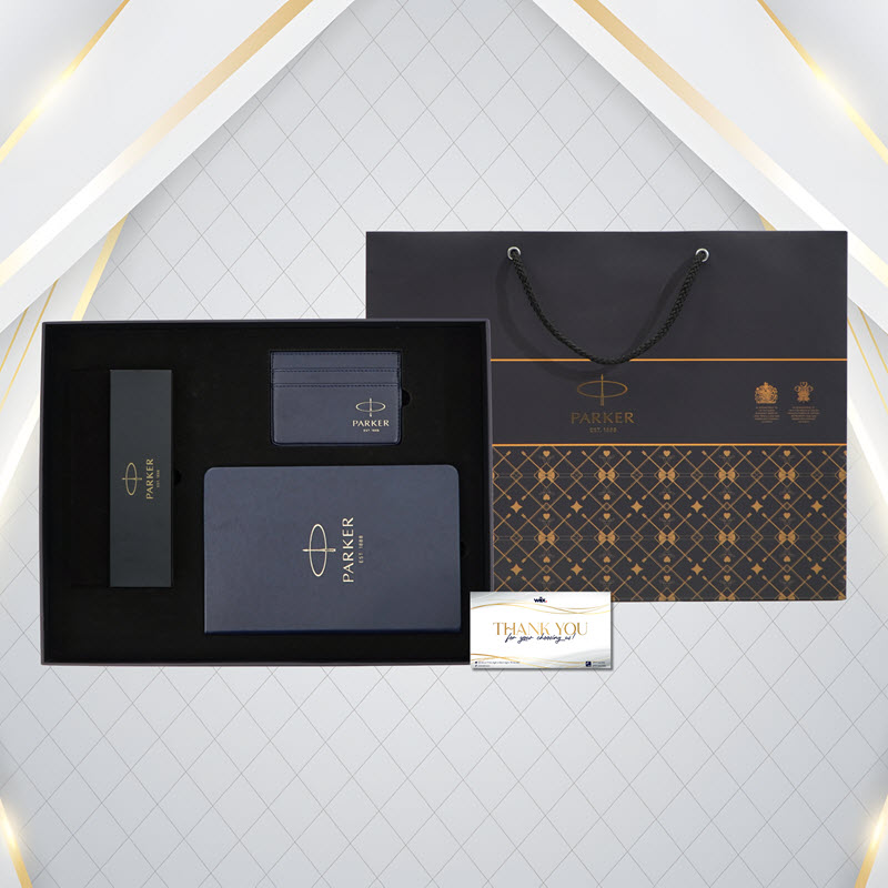 - Phụ kiện đi kèm: Sổ da, ví đựng thẻ, hộp quà, túi giấy Parker