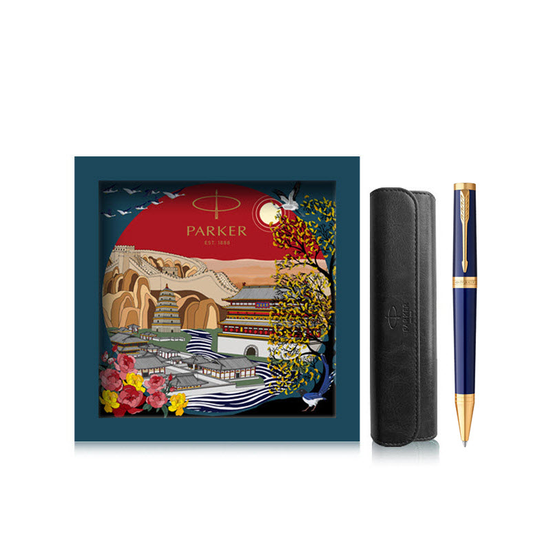 Bộ quà tặng bút ký Parker INGNTY BLUE GT-2182628 kèm ngòi, bao da, hộp và túi hãng