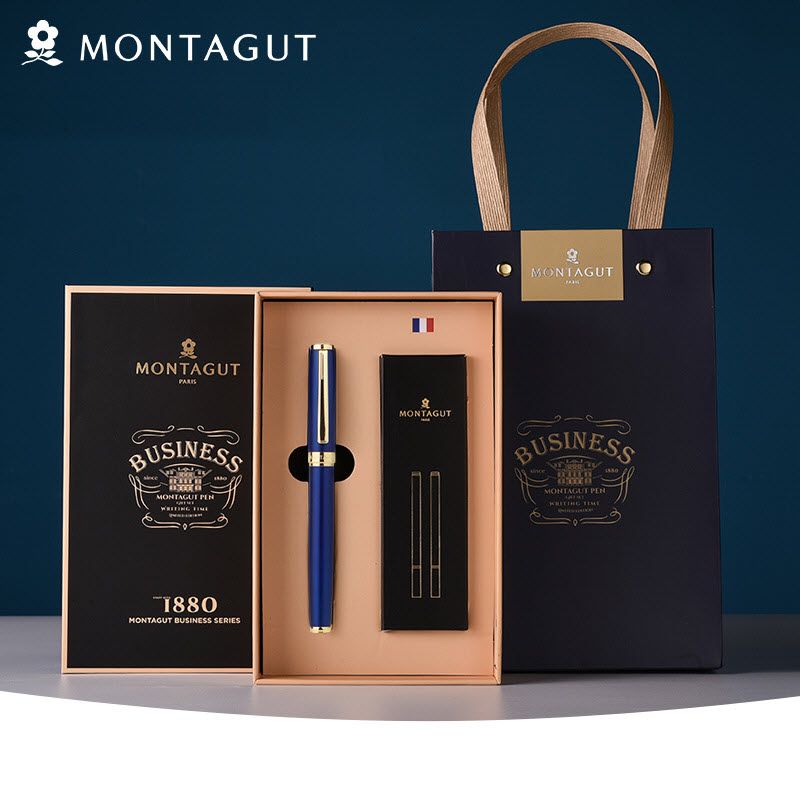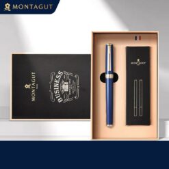 Bộ sản phẩm bút bi ký tên Montagut 066 màu xanh navy cao cấp đi kèm hộp đựng sang trọng và túi giấy trang trí. Điều này làm cho việc tặng quà trở nên hoàn hảo và lịch sự hơn bao giờ hết.