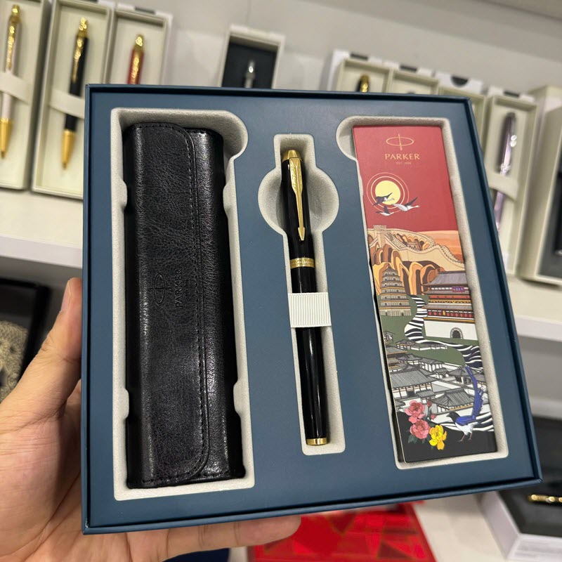 Bút bi ký tên Parker IM màu đen-vàng phiên bản cao cấp kèm bao da