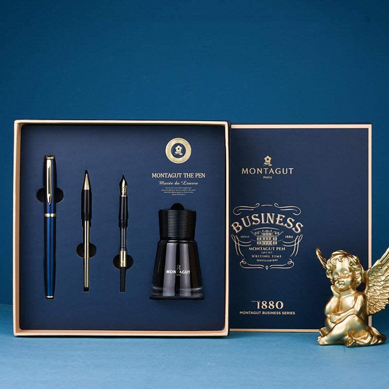 Bút ký này chắc chắn sẽ ghi điểm với những ai yêu thích sự sang trọng và đẳng cấp. Bộ sản phẩm bút Montagut chính hãng 086 màu xanh cao cấp đi kèm hộp đựng sang trọng và túi giấy trang trí. Điều này làm cho việc tặng quà trở nên hoàn hảo và lịch sự hơn bao giờ hết.