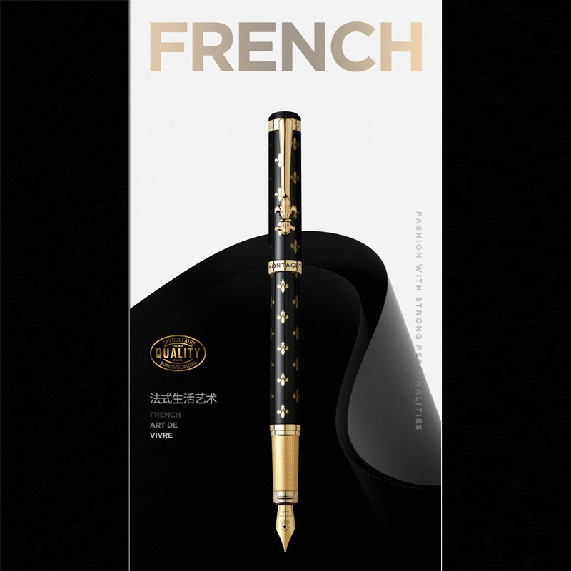 Bút máy ký tên Montagut họa tiết Monogram MT810 cao cấp (màu đen)