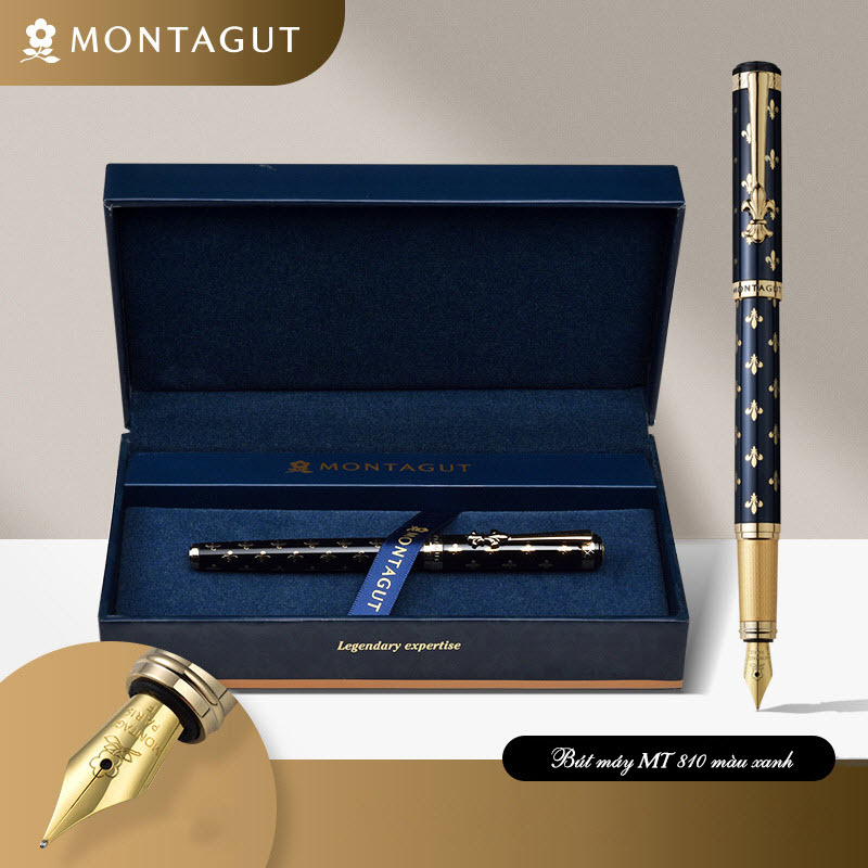 Bút máy ký tên Montagut họa tiết Monogram MT810 cao cấp (màu xanh)