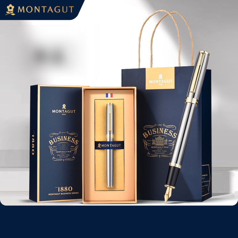 Bút máy Montagut cao cấp M303 có thiết kế màu bạc quen thuộc. Bạn có thể sử dụng bút máy này trong mọi tình huống, từ công việc hàng ngày đến những sự kiện quan trọng.