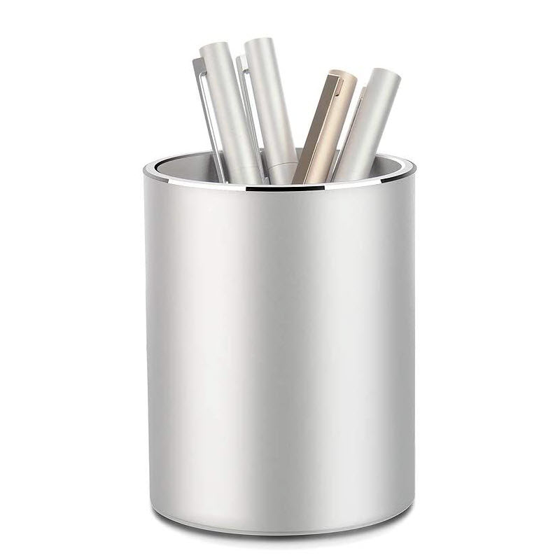 Hộp đựng bút để bàn hình tròn bằng nhôm nguyên khối được đúc từ nhôm nguyên khối tránh bút bị trầy xước, bụi bẩn là vật trang trí góc là việc thêm đẹp.