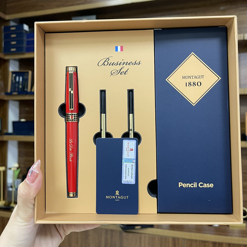 Set bút ký tên Montagut màu đỉ cao cấp kèm 2 ngòi
