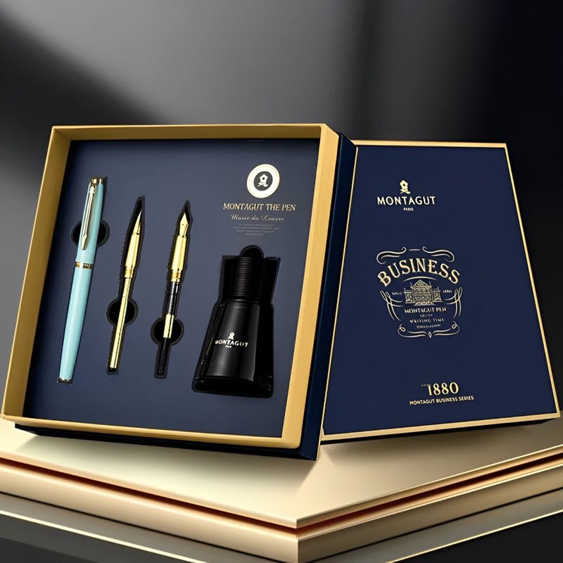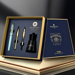 Bộ sản phẩm bút ký tên Montagut 086 màu xanh mint cao cấp đi kèm hộp đựng sang trọng và túi giấy trang trí. Điều này làm cho việc tặng quà trở nên hoàn hảo và lịch sự hơn bao giờ hết. Đặc biệt, bút ký tên Montagut 086 đi kèm với 1 lọ mực Montagut chính hãng và 2 ngòi thay thế, bao gồm 1 ngòi bút bi và 1 ngòi bút máy, giúp bạn linh hoạt thay đổi kiểu viết tùy theo nhu cầu.