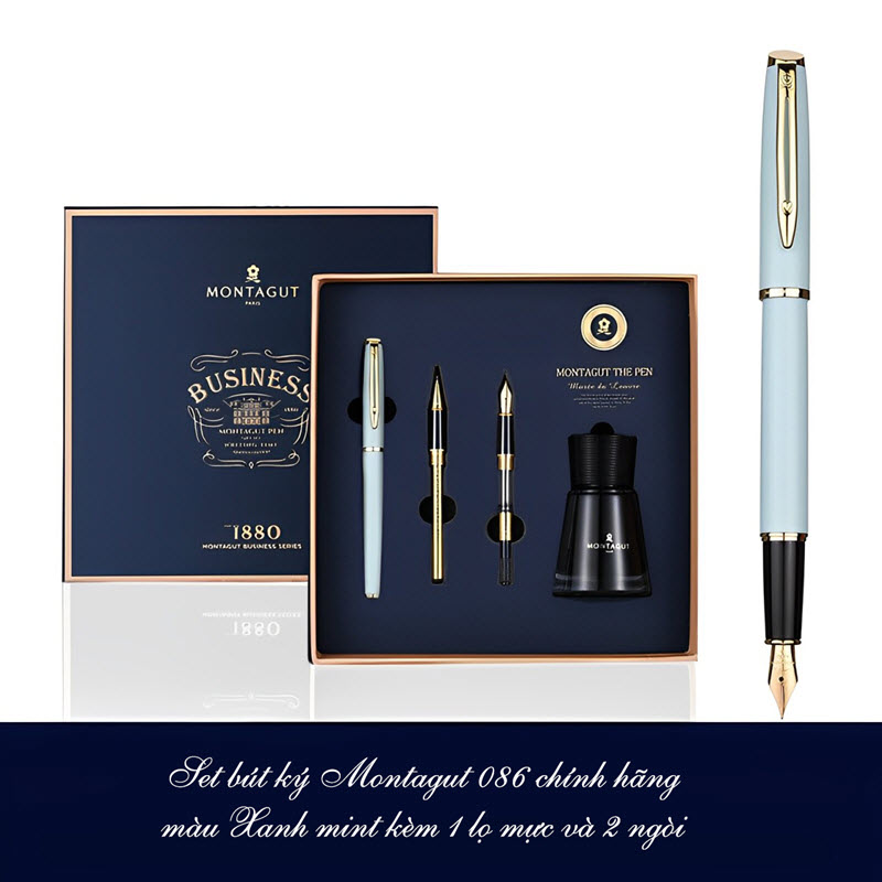 Set bút ký Montagut 086 chính hãng màu Xanh mint kèm 1 lọ mực và 2 ngòi