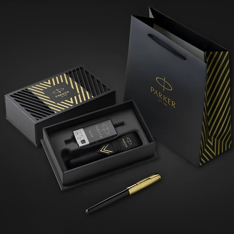 Set bút máy Parker đi kèm với hộp cao cấp, bao da và túi hãng, tạo nên một trải nghiệm mở hộp sang trọng và tinh tế. Bao da không chỉ bảo vệ bút mà còn tăng thêm tính thẩm mỹ. Mỗi chi tiết trên bút đều thể hiện sự tinh tế và tỉ mỉ của các nghệ nhân, từ việc chọn lựa chất liệu, thiết kế hình dáng đến quy trình sản xuất.